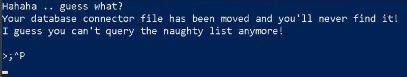 先程のファイルを実行すると、以下のように 煽り メッセージが表示されます。