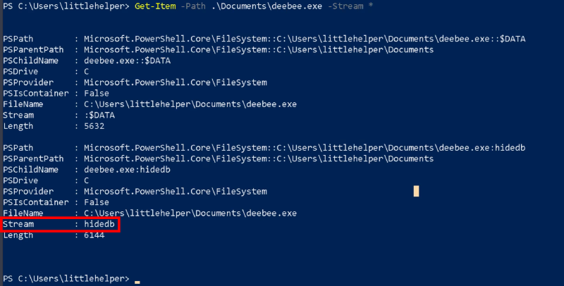 Get-Item -Path .\Documents\deebee.exe -Stream *「Get-Item」のDocumentはこちらです。