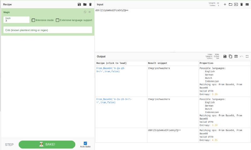 Base64であることが分からない場合、CyberChefではデコードを検知してくれる機能もあります。
