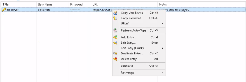 KeePassにログインしたあと、Elf Serverを確認します。